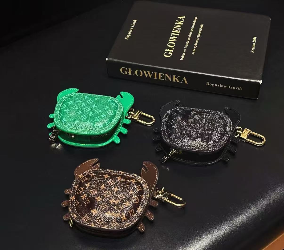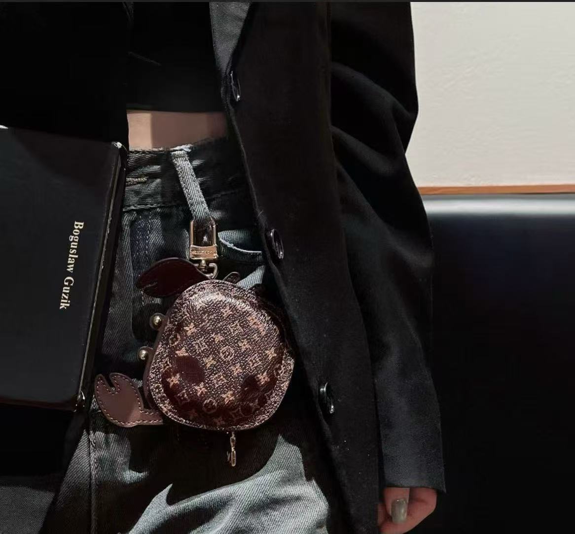 This earphone case features a fun crab-shaped design with classic monogram elements, combining cuteness and distinctiveness. The innovative zippered opening design allows for easy access while fitting the earphone tightly, effectively providing protection against drops, dust, and scratches. Made of high-quality materials, it has a delicate and durable texture, and is compatible with most mainstream Bluetooth earphone models. It is not only a practical protective gear but also a stylish accessory that showcases personality.