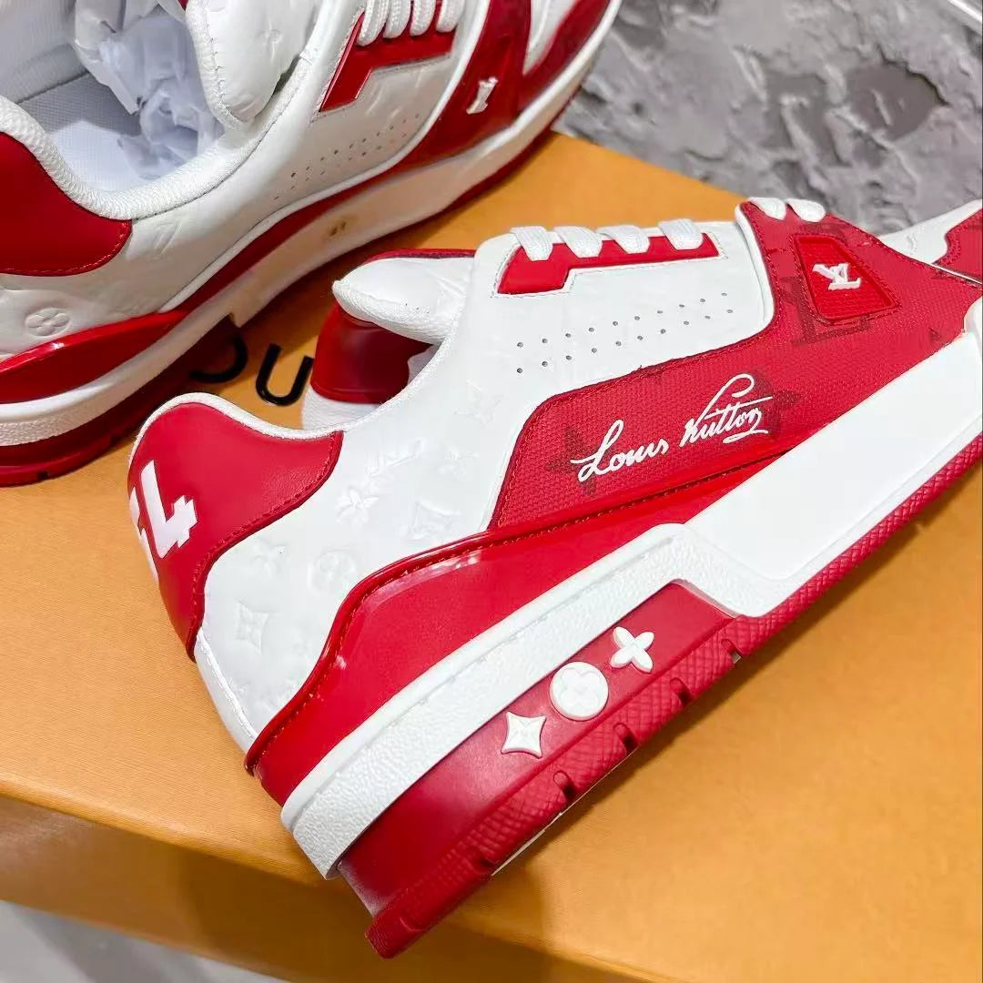 Red & White Contrast Trendy Low-Top Sneakers